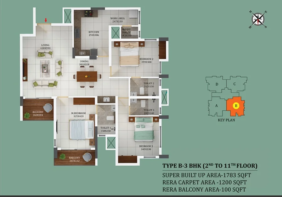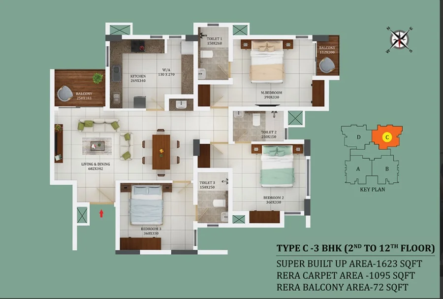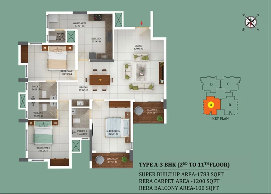 • Total Area : 1520-1520 sq.ft