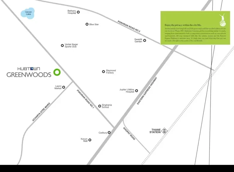 Hubtown Greenwoods Residential projects in Thane offering Apartments for sale in Thane West. The property offers 1,1.5,2&3BHK Apartments meticulously planned that guarantee a hassle-free lifestyle. As per the area plan it is set in 8 Acres and has 359 units in the size range 570.00 sq.ft. - 714.00 sq.ft. Possession date is ready to move. Hubtown Greenwoods offers prices suitable for both luxurious and affordable Apartments in Thane. Hubtown Greenwoods is located Thane West. This is considered as best Apartments for sale in Thane and best Apartments for sale in Thane West.