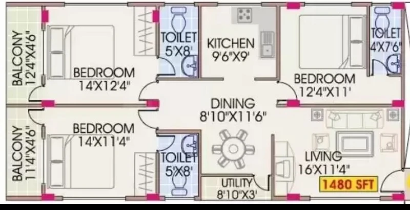 1090 - 1480 sq.ft