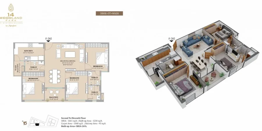 The floor plan of Manglam 14 Woodland Park enables the best utilization of the space with spacious balconies, standard kitchen size and high-quality fixtures. Location advantage of Manglam 14 Woodland Park is its proximity to Reputed Schools and Colleges. Unmatched connectivity from all the important landmarks and places. Easy access to everyday utility such as hospitals, schools, supermarts, parks, recreational centers etc.