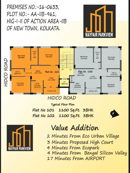 Mayfair Parkview Residential project in Kolkata offering Apartments for Sale in New Town. The property offers 3BHK Apartments meticulously planned that guarantee a hassle-free lifestyle. As per the area plan it is set in 0.14 Acres and has 8 units in the size range 1100 sq.ft. Possession date is Aug 2026. Mayfair Parkview offers prices suitable for both luxurious and affordable Apartments in Kolkata. Mayfair Parkview is located New Town. This is considered as best Apartments for Sale in Kolkata and best Apartments for Sale in New Town.