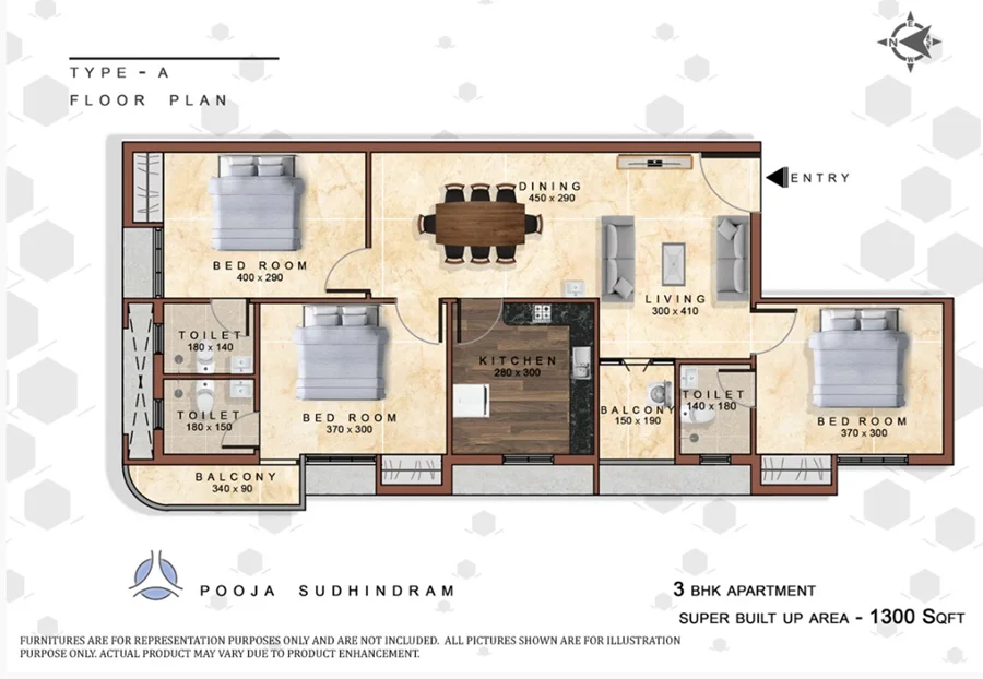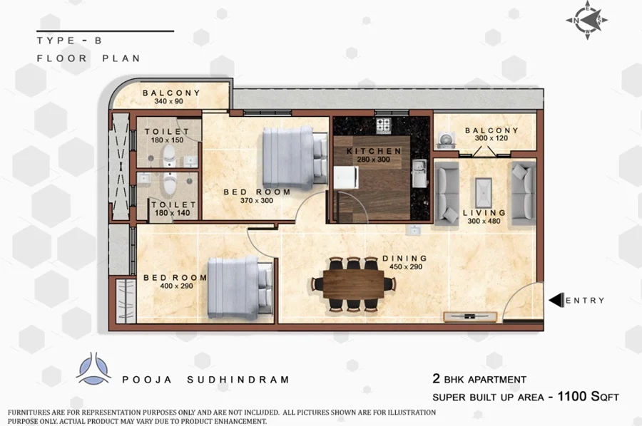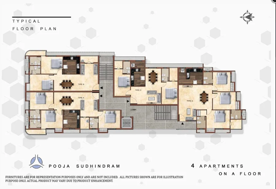 The floor plan of Pooja Sudhindram enables the best utilization of the space with spacious balconies, standard kitchen size and high-quality fixtures. Location advantage of Pooja Sudhindram is its proximity to Reputed Schools and Colleges. Unmatched connectivity from all the important landmarks and places. Easy access to everyday utility such as hospitals, schools, supermarts, parks, recreational centers etc.