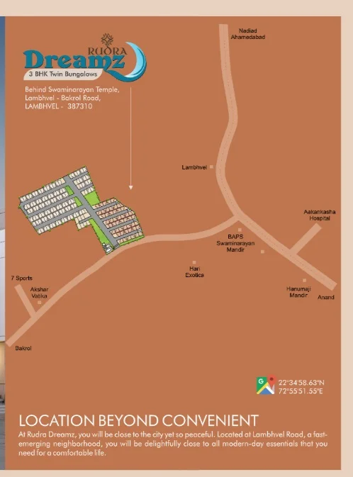 Rudra Dreamz Residential project in Anand offering Villa for Sale in Lambhvel. The property offers 3BHK Villa meticulously planned that guarantee a hassle-free lifestyle. As per the area plan it has 157 units in the size range 1100- 1200 sq.ft. Possession date is Jan 2027. Rudra Dreamz offers prices suitable for both luxurious and affordable Villa in Anand. Rudra Dreamz is located Lambhvel. This is considered as best Villa for Sale in Anand and best Villa for Sale in Lambhvel.