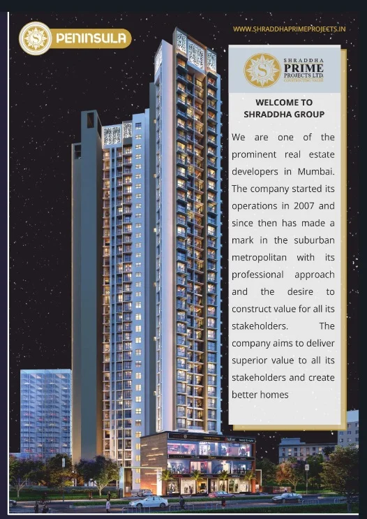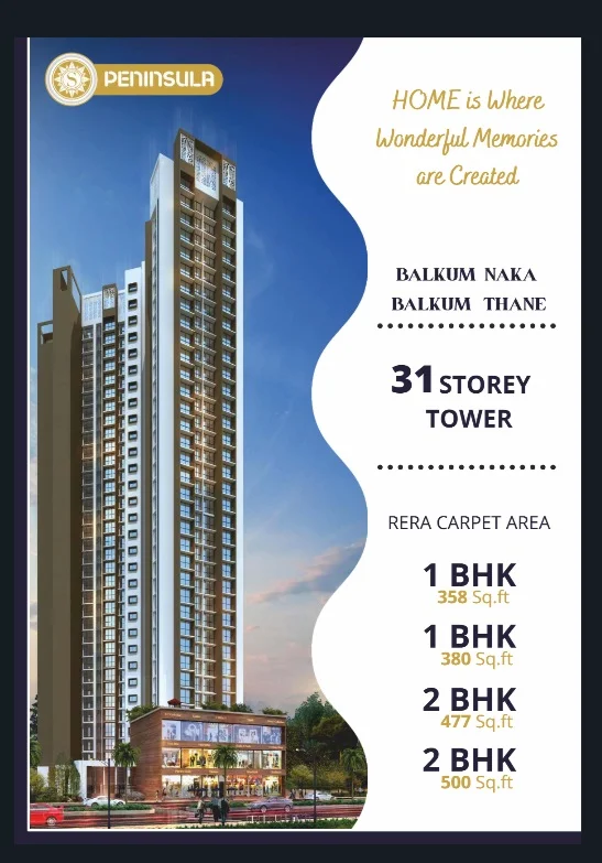 Shraddha Peninsula Residential project in Thane offering Apartments for Sale in Balkum. The property offers 1&2BHK Apartments meticulously planned that guarantee a hassle-free lifestyle. As per the area plan it is set in 0.87 Acres and has 230 units in the size range 358 - 499 sq.ft. Possession date is April 2026. Shraddha Peninsula offers prices suitable for both luxurious and affordable Apartments in Thane. Shraddha Peninsula is located Balkum. This is considered as best Apartments for Sale in Thane and best Apartments for Sale in Balkum.
