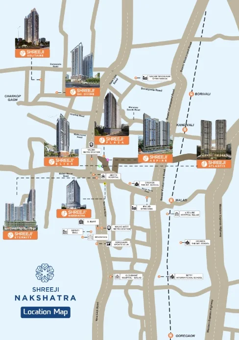 Shreeji Nakshatra Residential project in Mumbai offering Apartments for Sale in Malad West. The property offers 1BHK Apartments meticulously planned that guarantee a hassle-free lifestyle. As per the area plan it is set in 0.42 Acres and has 155 units in the size range 354 - 448 sq.ft. Possession date is Aug 2028. Shreeji Nakshatra offers prices suitable for both luxurious and affordable Apartments in Mumbai. Shreeji Nakshatra is located Malad West. This is considered as best Apartments for Sale in Mumbai and best Apartments for Sale in Malad West.