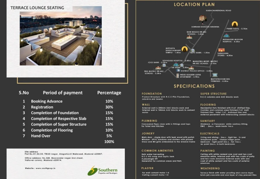 Sornam Keshava Krushna Residential project in Madurai offering Apartments for Sale in TWAD Nagar. The property offers 2&3BHK Apartments meticulously planned that guarantee a hassle-free lifestyle. As per the area plan it has 20 units in the size range 1258.00 sq.ft. - 1694.00 sq.ft. Possession date is Aug 2025. Sornam Keshava Krushna offers prices suitable for both luxurious and affordable Apartments in Madurai. Sornam Keshava Krushna is located TWAD Nagar. This is considered as best Apartments for Sale in Madurai and best Apartments for Sale in TWAD Nagar.