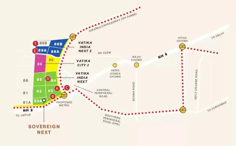 The floor plan of Vatika Sovereign Next enables the best utilization of the space with spacious balconies, standard kitchen size and high-quality fixtures. Location advantage of Vatika Sovereign Next is its proximity to Reputed Schools and Colleges. Unmatched connectivity from all the important landmarks and places. Easy access to everyday utility such as hospitals, schools, supermarts, parks, recreational centers etc.