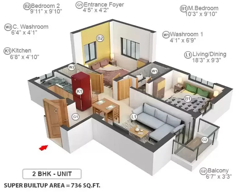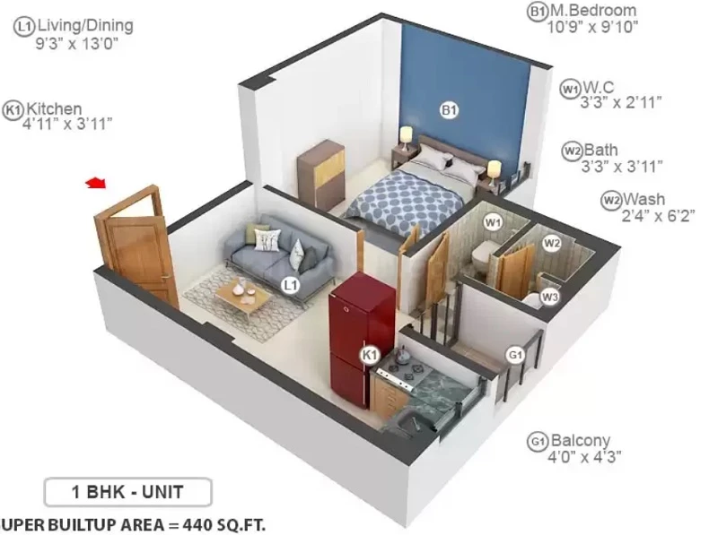 • BuiltUp Area : 452sq.ft.