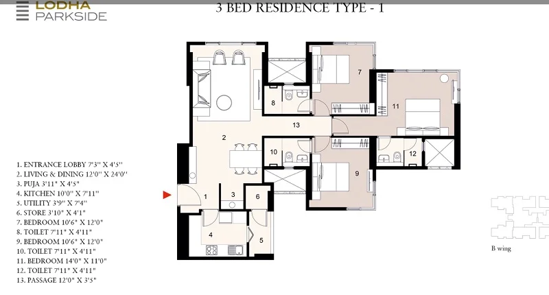 The floor plan of Lodha Parkside enables the best utilization of the space with spacious balconies, standard kitchen size and high-quality fixtures. Location advantage of Lodha Parkside is its proximity to Reputed Schools and Colleges. Unmatched connectivity from all the important landmarks and places. Easy access to everyday utility such as hospitals, schools, supermarts, parks, recreational centers etc.