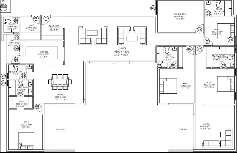 • BuiltUp Area : 2286sq.ft.